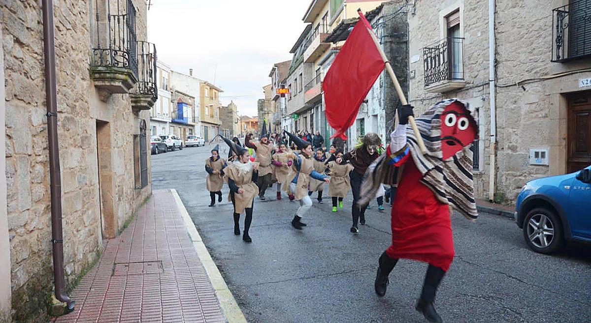 La Bufa de san Antón se celebra en esta localidad ribereña el sábado más próximo al 17 de enero. Se trata de una tradición recuperada en el año 2009. […] En la actualidad la fiesta ha cambiado de manera considerable y, únicamente, mantiene un elemento de su esencia más tradicional: los niños que siguen siendo protagonistas con y sus disfraces de arpillera. En la Neobufa de san Antón encontramos dos personajes de raigambre popular, el Judas y la Urga. En el nuevo imaginario popular estos seres dañaban las cosechas por lo que había que expulsarlos. Los actores implicados reúnen al pueblo en el centro cultural. Allí, mediante una representación que cada año varían en su presentación, aunque no en su contenido, explican la historia de la Urga y el Judas como seres dañinos y la necesidad de expulsarlos. Posteriormente, los dos actores recorren la calle junto con los niños e interactúan con ellos. Estos arrojan paja sobre la Urga y el Judas para ahuyentarlos. El recorrido dura aproximadamente una hora y es animado por la música tradicional salmantina. (https://zasnet-aect.eu/sites/default/files/documentos/Territorio%20ZOELA_Mascaradas_Inventario_96ppp.pdf)
