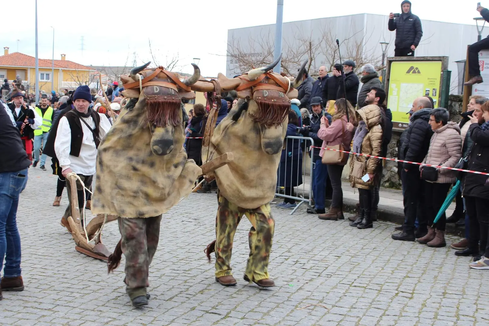 Antiguamente se celebraba el 26 de diciembre, pero en la actualidad se ha recuperado en el año 2002 por la Asociación Cultural “Aires de Aliste” el 15 de agosto por la tarde aprovechando el regreso en esas fechas de muchos emigrados. Desde que se recuperara el número de personajes que han llegado a ser dieciséis que han variado según los años, pero han mantenido los esenciales que se organizan en grupos: dos sembradores; dos bueyes, guiados por un Arador y un Gañán; la Filandorra que lleva al Niño que es un muñeco acompañada del Soldado; el Ciego, el Mendigo y el Piojoso; el Gaitero y el Tamborilero acompañando al Bailador y la Bailadora, que hacen las veces de Galán y Madama de otras obisparras; y el Afilador. […] Se parte de la era y los sembradores encabezan el desfile esparciendo paja, sigue el Gañan con los bueyes y el arador sujetando la cuerda y la macera del arado […]. El Arador reza el responso a san Antonio, pero es la fuerza del Gañán la que controla a los bueyes que se descontrolan cuando les parece cuando ven a alguna moza. Los siguen la Filandorra y el Soldado […]. El Piojoso desfila frotando la espalda contra las paredes simulando picor. El Mendigo lleva del brazo al Ciego y le sirve de lazarillo y en cada casa cantan una copla hecha exprofeso para el lugar y renovada cada año. El Bailador y la Bailadora van con los músicos y representan al pueblo […]. En algunos cruces se representas escenas tradicionales como tejer e hilar lino, hacer adobes lavar ropa a mano… Al final se hace un baile. (https://zasnet-aect.eu/sites/default/files/documentos/Territorio%20ZOELA_Mascaradas_Inventario_96ppp.pdf)